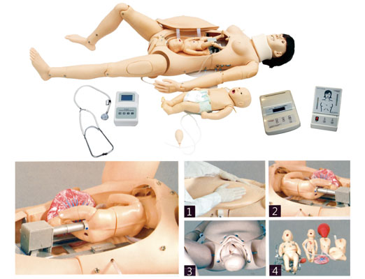 高級分娩與母子急救模型 該綜合教學(xué)模型很好的結(jié)合了護理模型和產(chǎn)科分娩模型,可進行產(chǎn)前檢查,演示整個分娩過程(包括產(chǎn)前、產(chǎn)時和產(chǎn)后)以及母嬰的護理和急救。
